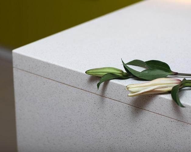 Crystal Ice features large quartz particles that look like glass fragments. The transparent particles provide a depth that adds a unique element to its surrounding aesthetic details.