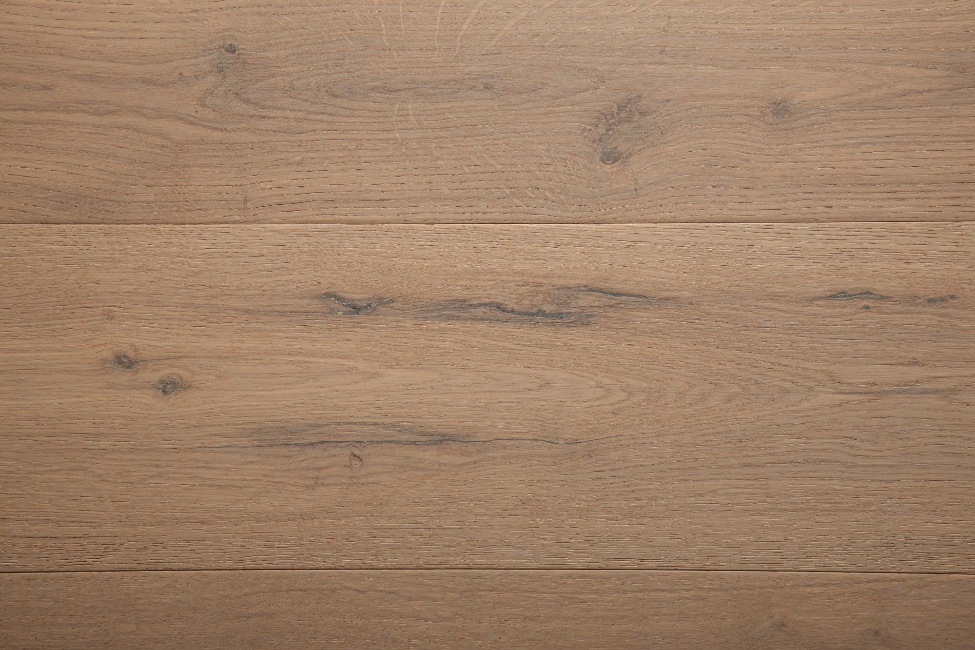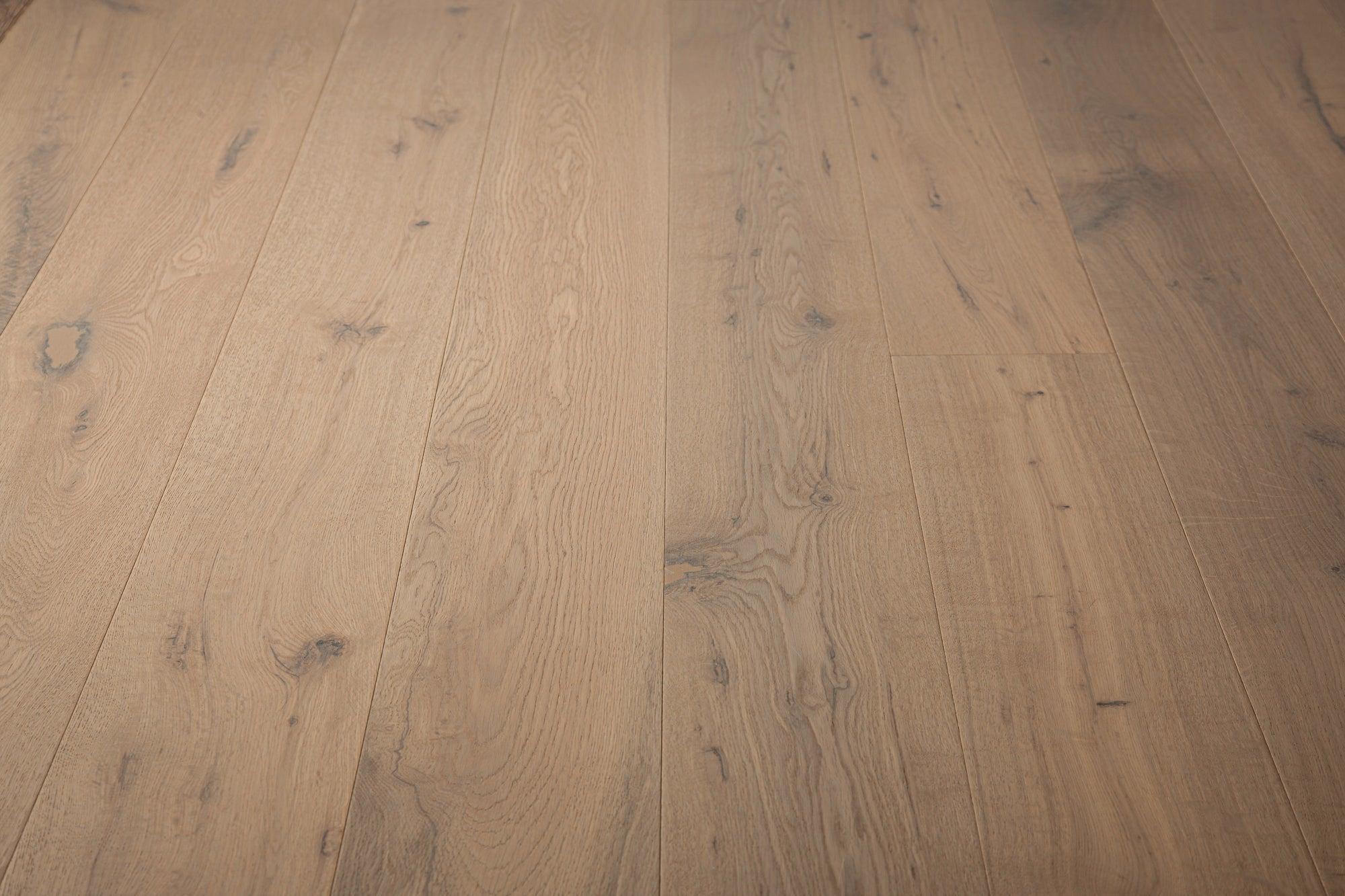 This white oak flooring features warm blond tones with a hint of grey, and light wire brushing for a natural finish.