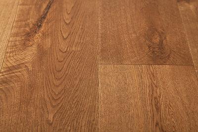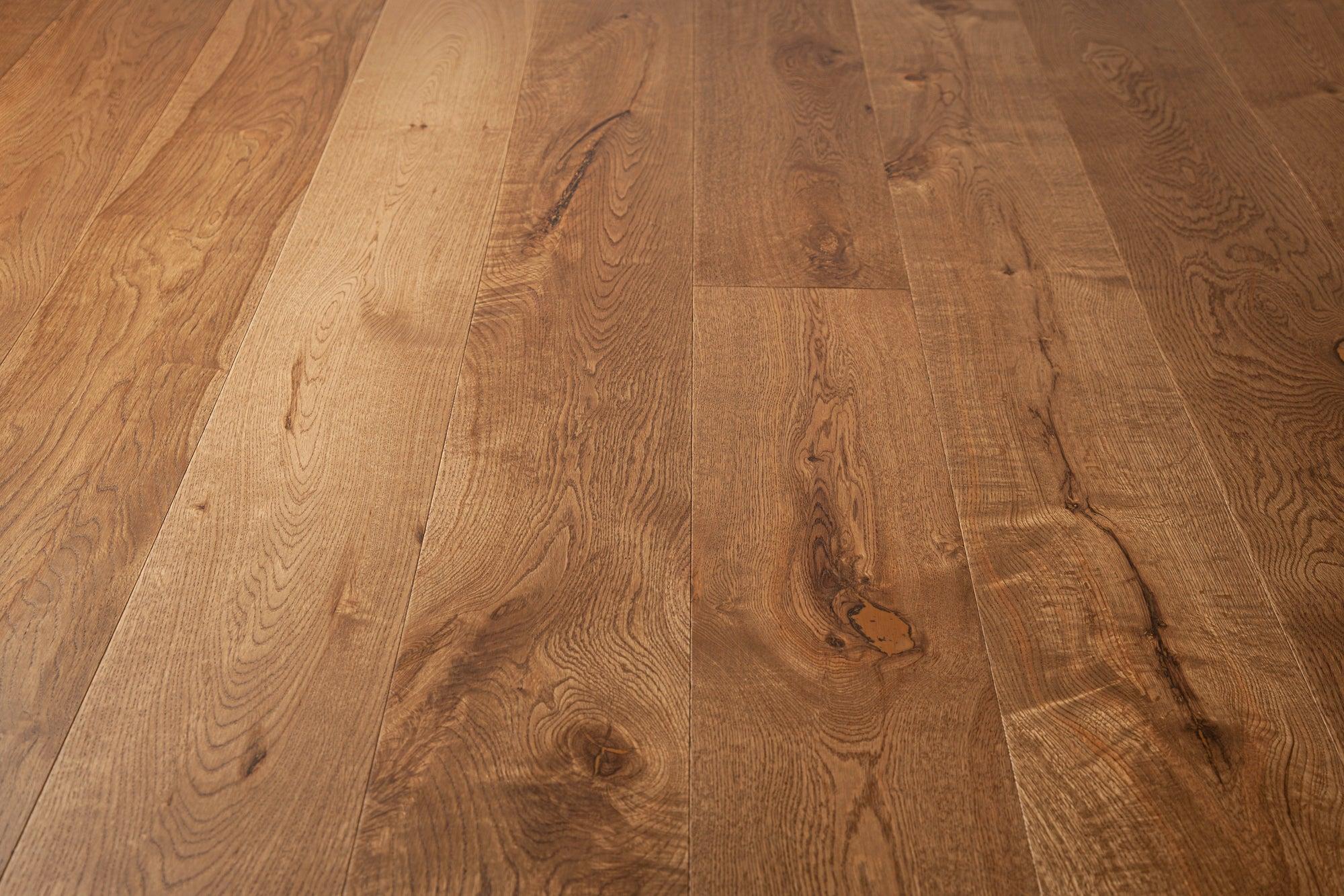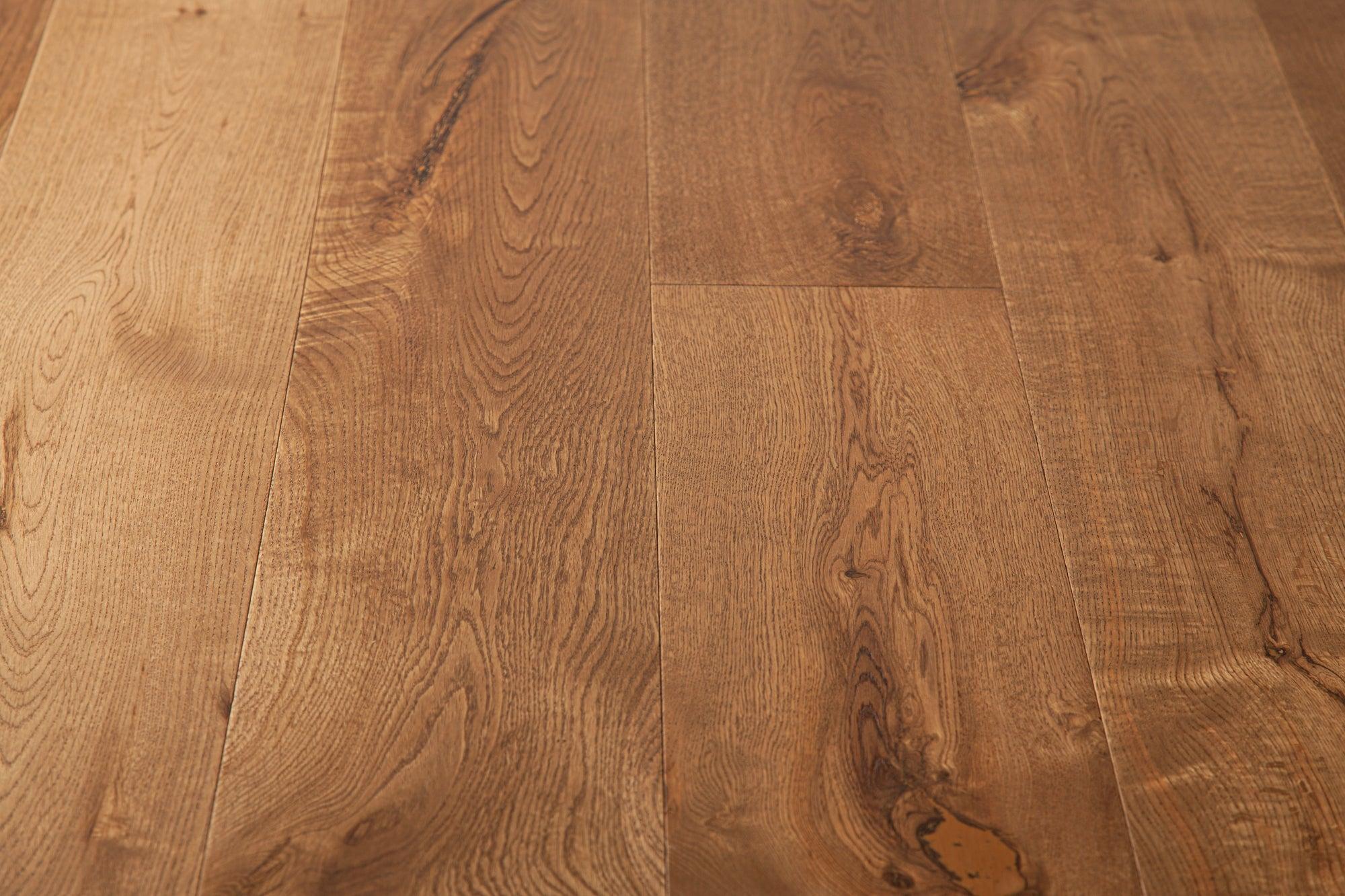 This oak flooring is characterized by its simple light brown colour, with a wire brush finish to enhance the natural wood variation.