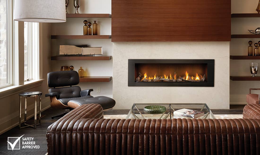 The Napoleon Linear™ 62 Gas Fireplace can be installed in both residential or commercial applications. With various media enhancement kits and decorative options to choose from, it’s easy to make The Linear™ 62 Gas Fireplace the perfect focal point for any room in your home. The state-of-the-art Proflame II remote control allows convenient flame adjustment, flame on/off, and operates the exclusive NIGHT LIGHT™. The Linear™ 62 comes standard with a Topaz CRYSTALINE™ ember bed, four-piece black trim, Proflame II remote control, MIRRO-FLAME™ Porcelain Reflective Radiant Panels and electronic ignition making it the perfect fireplace for lobbies, entrance ways, hallways, bars, lounges, living rooms, and more.