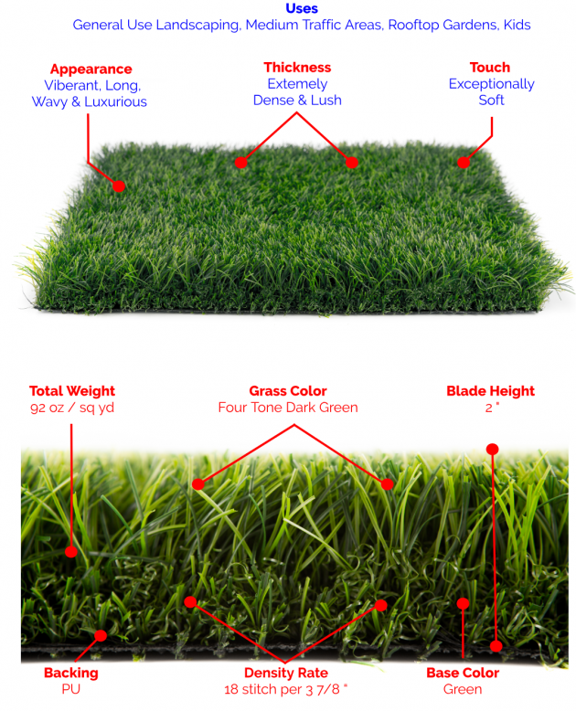 Lush is Premium Grass Blades signature synthetic turf. Luxurious to the touch, beautifully ornate, rich in color, the gorgeous range of greens amid the blades give the look of freshly cut spring grass. Lush gives rich, bold color to any landscape. This premium quality synthetic turf lives up to its name.