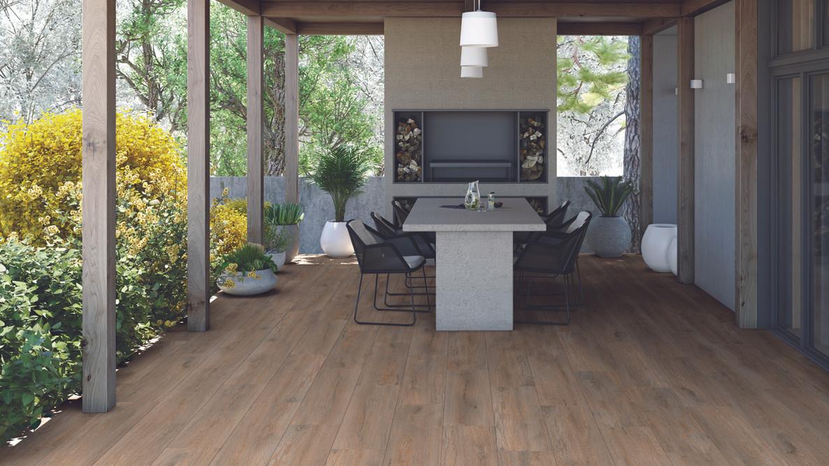 The plank format and high performance of porcelain make it perfect for west coast exterior paving.