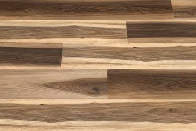 This wide plank (9") luxury vinyl features warm golden and brown colours with medium brown undertones and lots of variation from board to board. The embossed surface creates a real wood texture and high-end appearance.